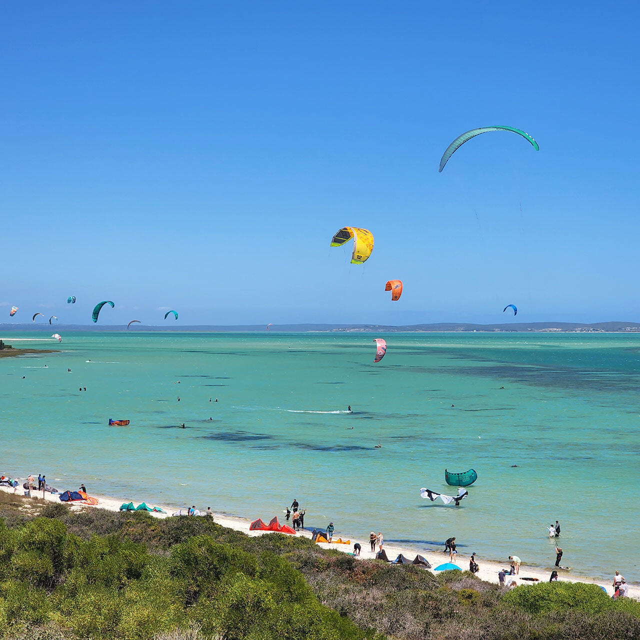 We kitesurf, and we're friends with the kitesurfing schoolsBoth Obsession Kiting and Kitelab in Langebaan offer comprehensive kiteboarding lessons for all skill levels,Book a downwind run from Shark Bay to Mykonos.