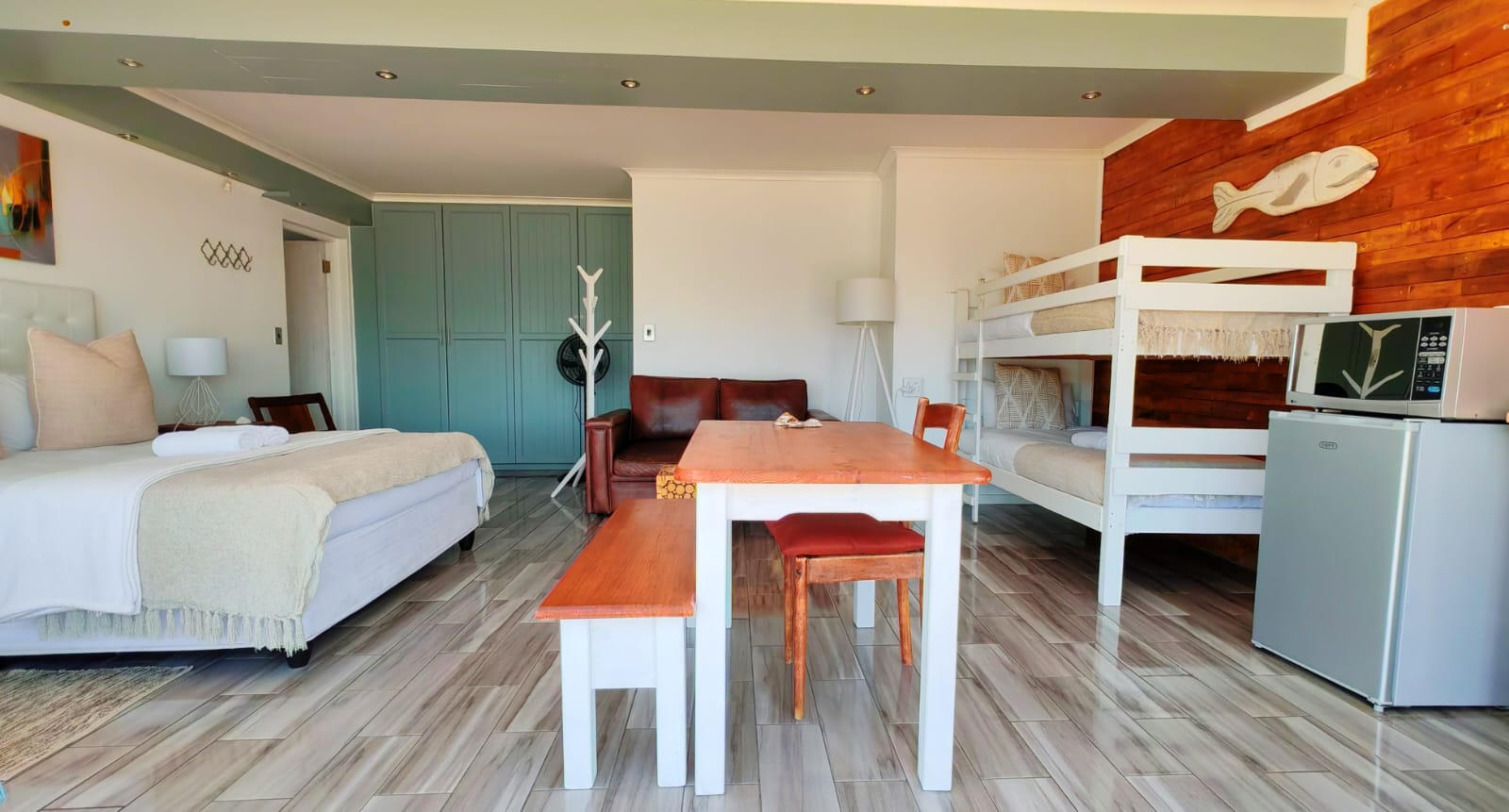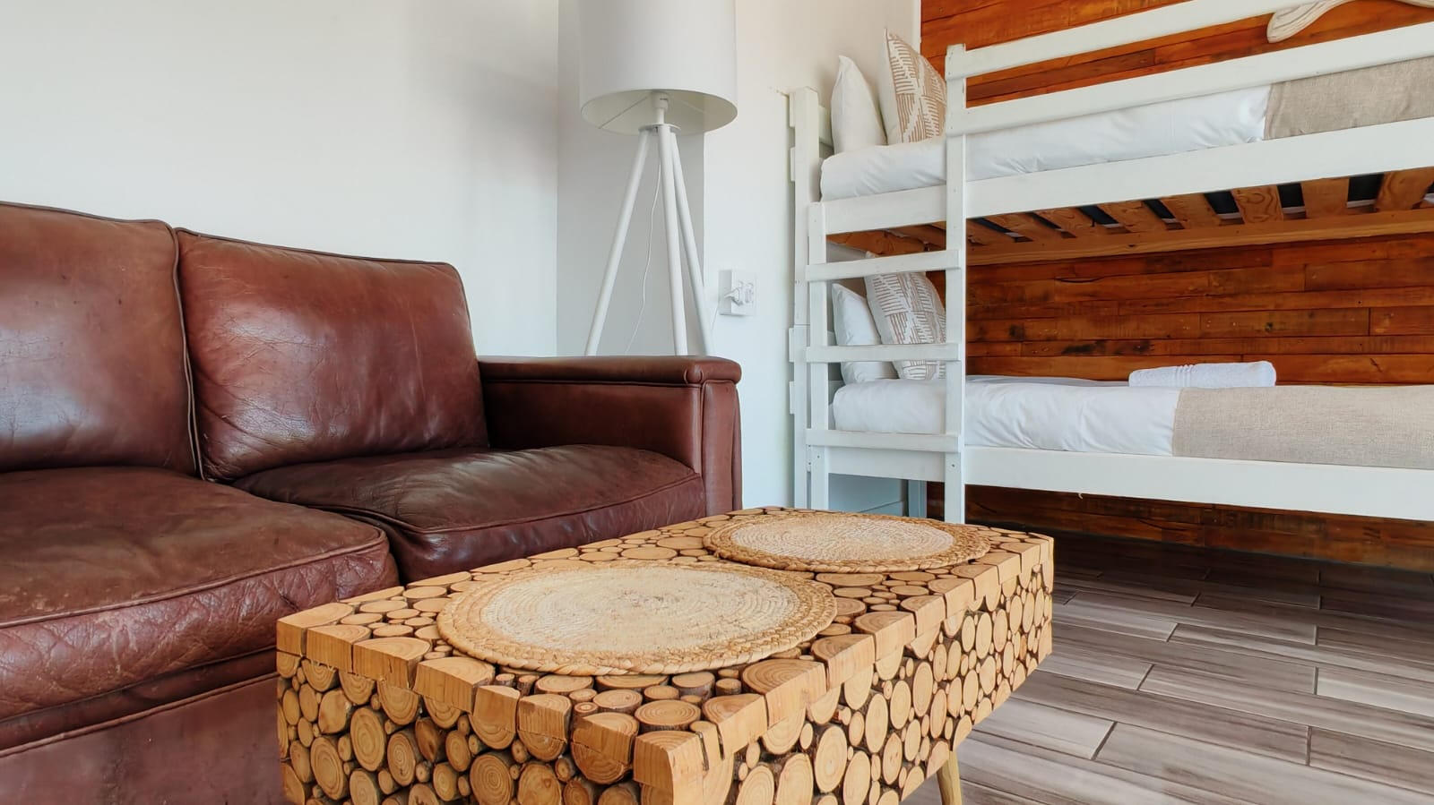 Spacious en-suite space sleeping 6 - Queen-size bed, 1 bunk bed and 1 double sleeper couch.Self catering for ready prepped mealsGround floor